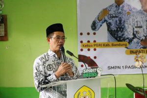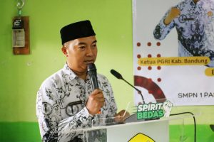 Pasirjambu, Kabupaten Bandung – Ketua Persatuan Guru Republik Indonesia (PGRI) Kabupaten Bandung H. Yusup Salim, M.Pd. didamping Sekretaris Teri Yanto, M.Pd., Wakil Ketua Satu M. Yusup Sukandar. M.Pd dan Wakil Ketua Dua Isak Fauzi S., M.M. resmi melantik pengurus PGRI Cabang Pasirjambu untuk masa bakti 2025–2030. bertempat di SMPN 1 Pasirjambu (Sabtu,8/11/2025).